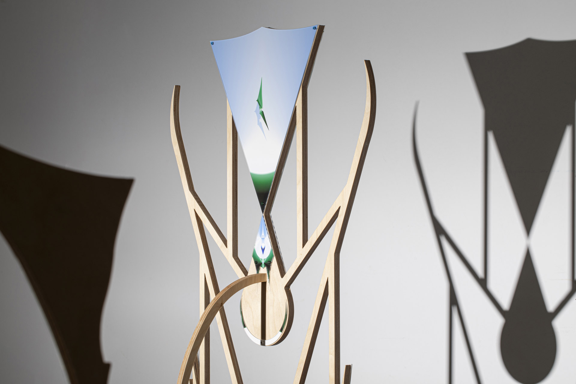 Foliage Head, MOLNÁR’s fourth solo exhibition in Kisterem, is an organic continuation of his work to date, reflecting on the fragility and vulnerability of the ecosystem’s balance and the functioning of the agro-ecological environment shaped by external interventions. The exhibition, which summarizes nearly a year and a half of work, explores aspects of the passage of time by juxtaposing the concepts of transience and transformation. Using motifs such as the hourglass, the caterpillar, and the chewed leaf, Molnár’s works, which require a constant shift in spatial perspective and can also be interpreted as flowcharts, focus on nature’s dynamic ability to adapt and constantly reorganize itself in response to human presence.